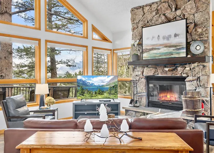 De gesitueerde in Estes Park Montane Luxury Vacation Rental At Windcliff Home Estes Park is op 10 minuten rijden van Lily Lake gelegen en beschikt over een zwembad, een sauna, voor een ontspannen verblijf.